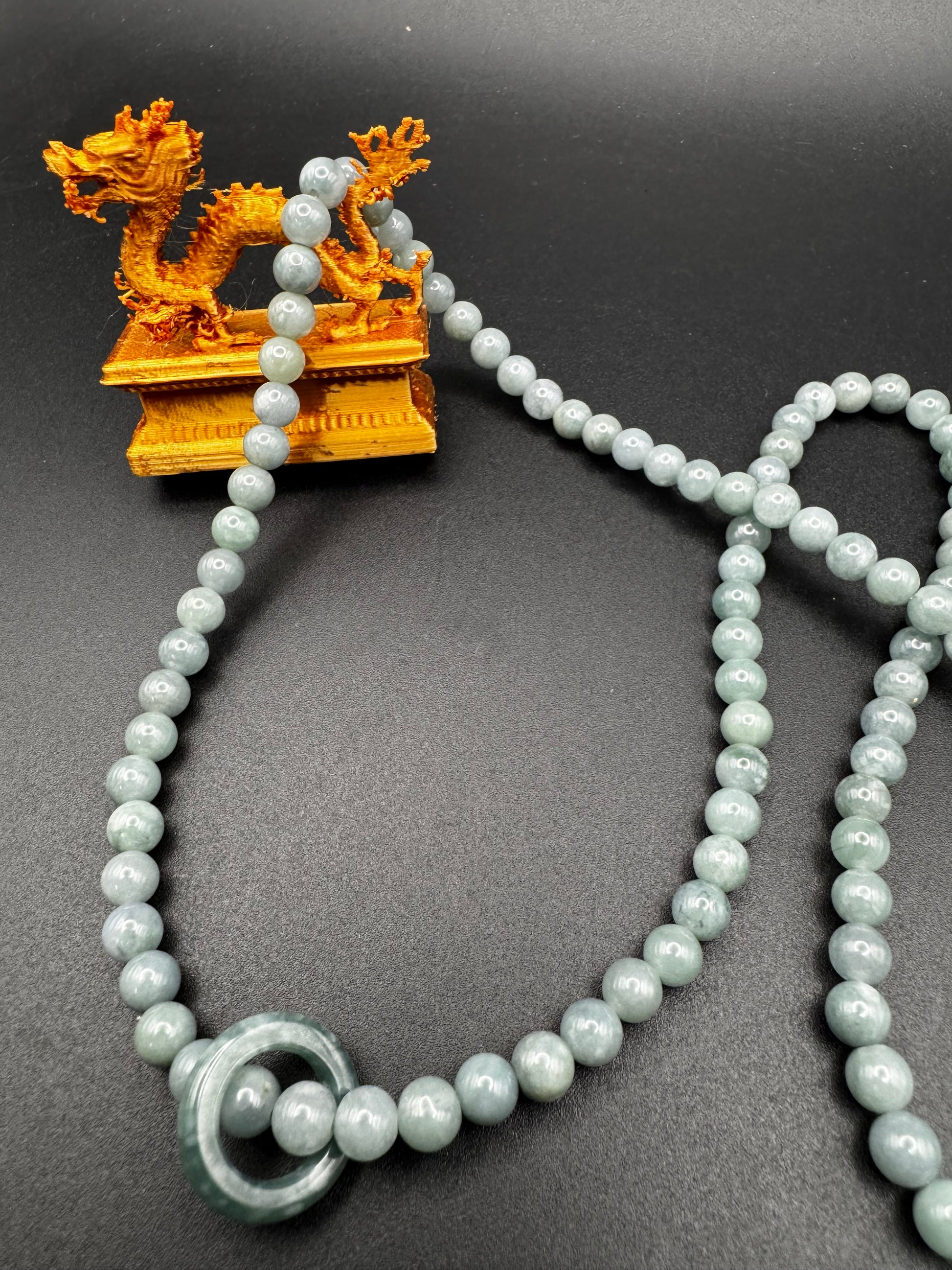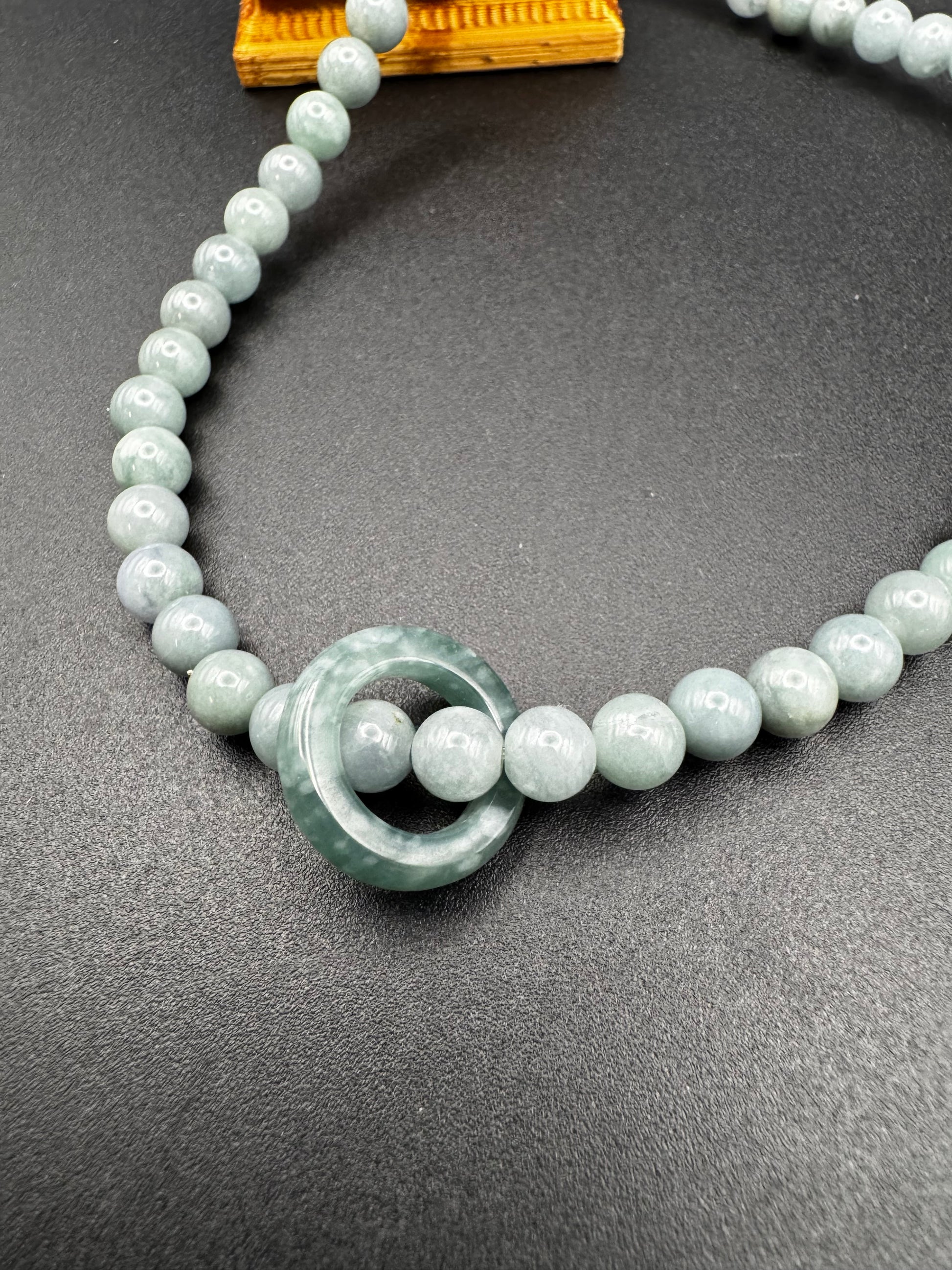 Blue Water Jade Beaded Necklace with a blue water loop pendant accent