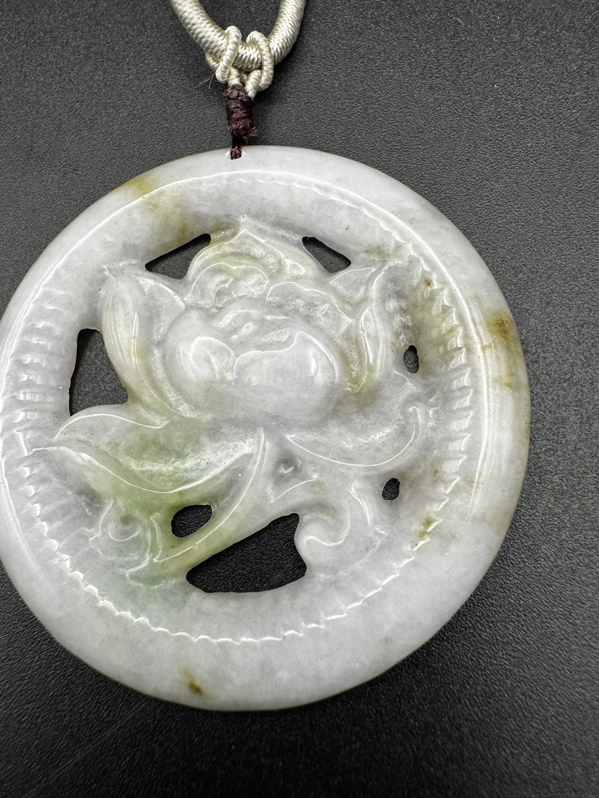 Jade Flower pendant, carved through with intricate details. Light and beautiful piece.